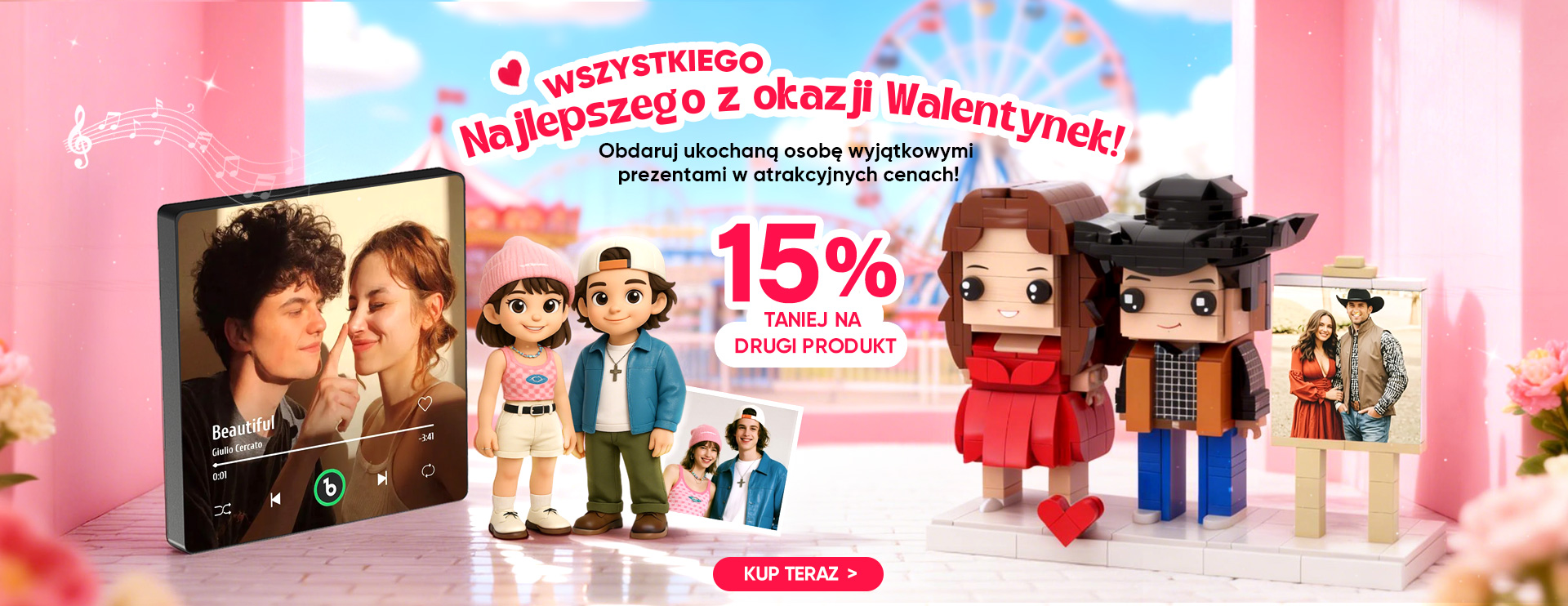 Te spersonalizowane Figurki z Klocków są doskonałym nośnikiem do przechowywania słodkich wspomnień. To idealny prezent na rocznicę, urodziny, Walentynki, ślub, Boże Narodzenie, itp. Bez względu na to, dla kogo są przeznaczone, te duże bloki z zdjęciami stanowią doskonały prezent. Należy zauważyć, że wysyłany jest tylko zestaw materiałów, a ostateczne gotowe produkty muszą być ręcznie zmontowane. Możesz cieszyć się zabawą z układaniem klocków razem z partnerem, przyjaciółmi, członkami rodziny.