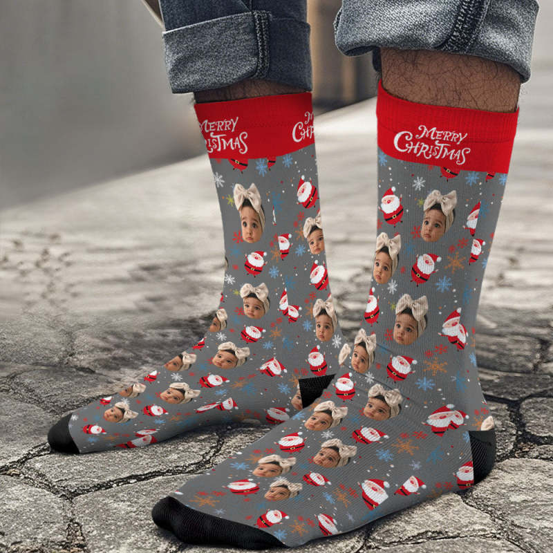 Świąteczne Skarpetki Z Nadrukiem Twarzy, Zabawne Wzory, Najlepszy Pomysł Na Prezent, Świąteczne Skarpetki