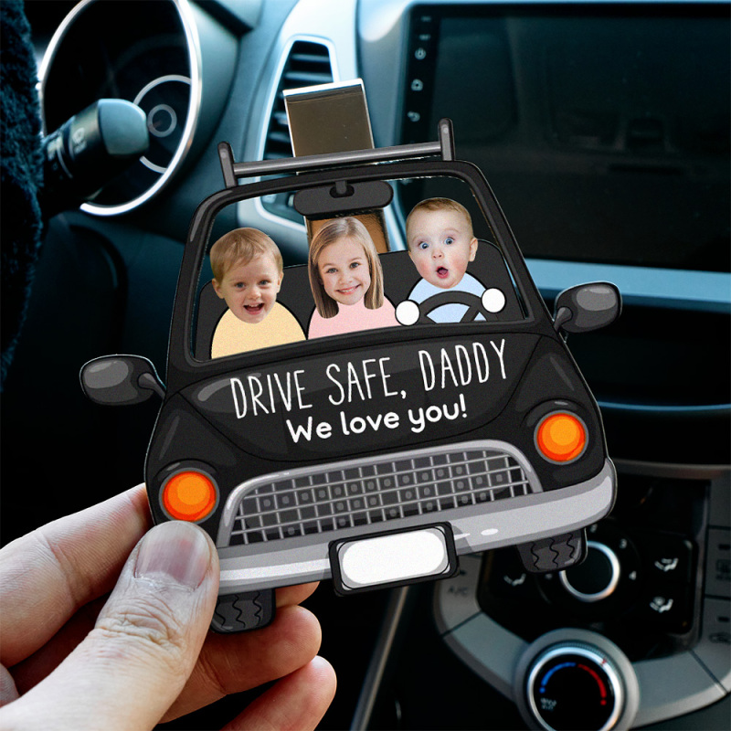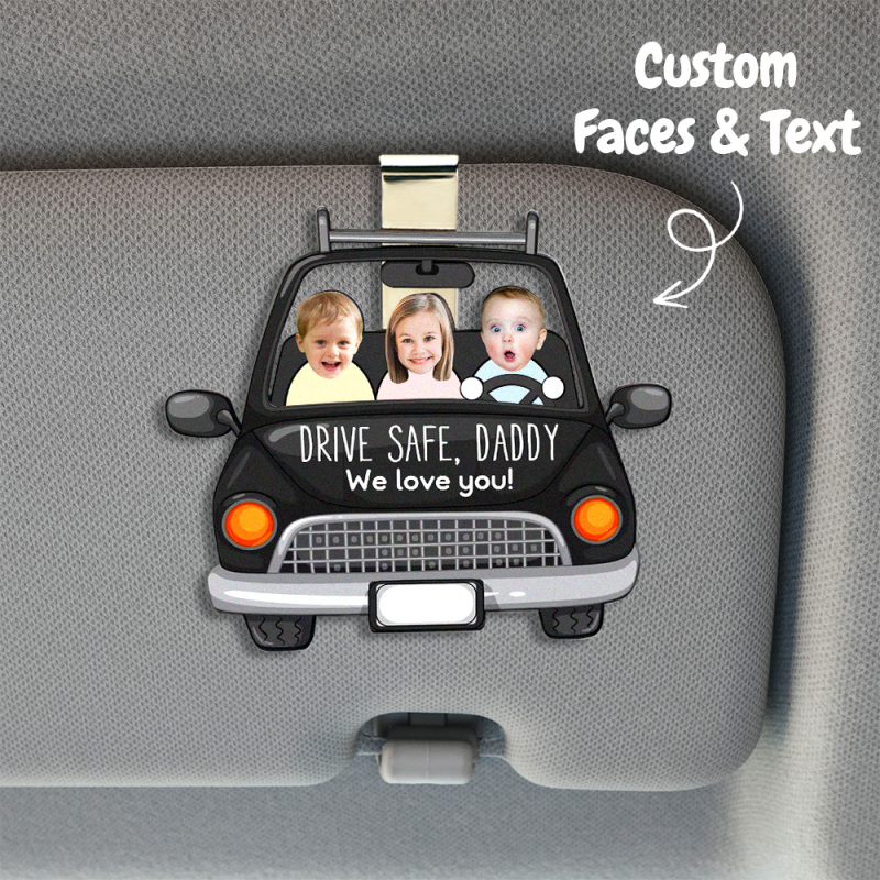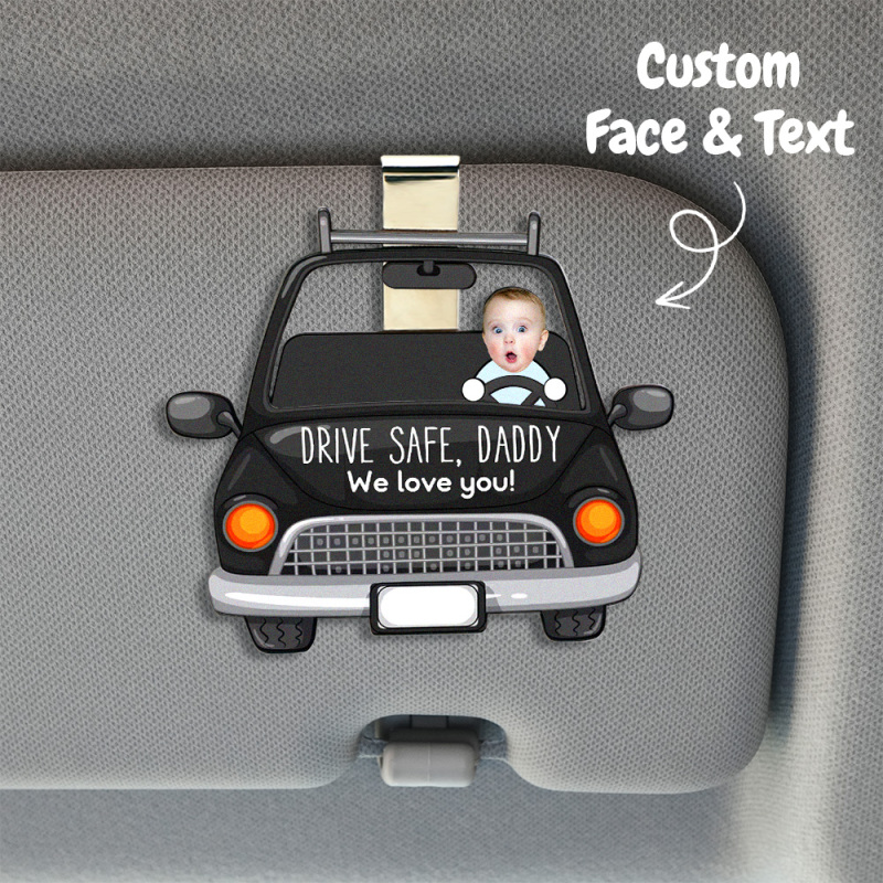 Spersonalizowany Drewniany Klips Do Osłony Samochodowej Zdjęciowej Niestandardowy Twarz Dziecięca Bezpieczna Jazda Tatą