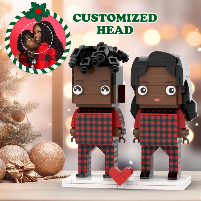 Brzydka Świąteczna Czarna Piżama Dla Par Niestandardowe Figurki Z Klocków Twarzy Możliwość Dostosowania Głowy 2 Osoby Niestandardowe Figurki Z Klocków